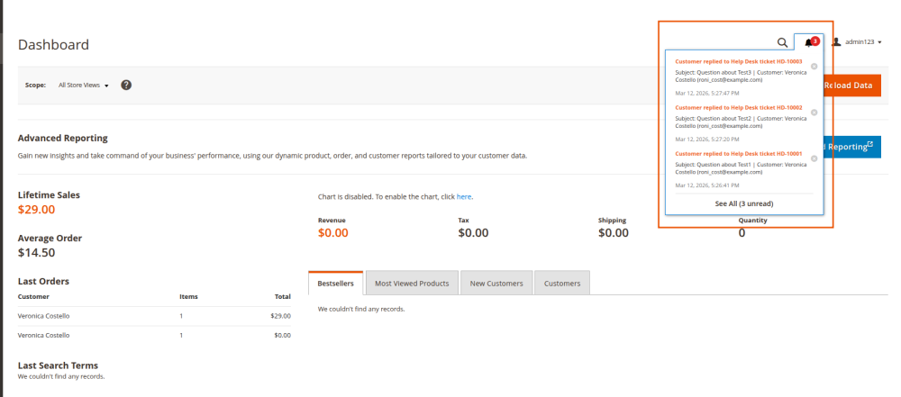 - Customer replies can also create admin panel inbox notifications if enabled.