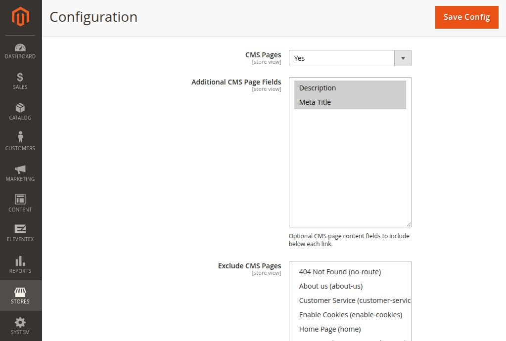 Decide exactly what content is included in the file. Choose from CMS pages, products, and categories, and exclude any items that should not be publicly available.